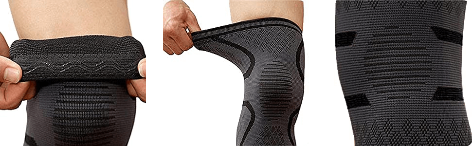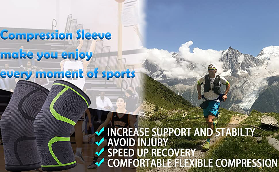 √ Function: The knee pads compression sleeve is made with premium quality nylon, latex and spandex to keep you comfortable and breathable during prolonged wear. The circular knit structure provides 360-degree stretch for greater flexibility, unparalleled power and durability. Double-layer & non-slip strips greatly reduce the possibility of sleeves sliding down.