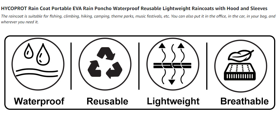✔ DURABLE & REUSABLE: These reusable raincoats are not only quick-drying but also can be reused for a long time. Durable, waterproof and breathable. And it can be folded into a small size, so you can put it in a backpack/home/office or in a car.