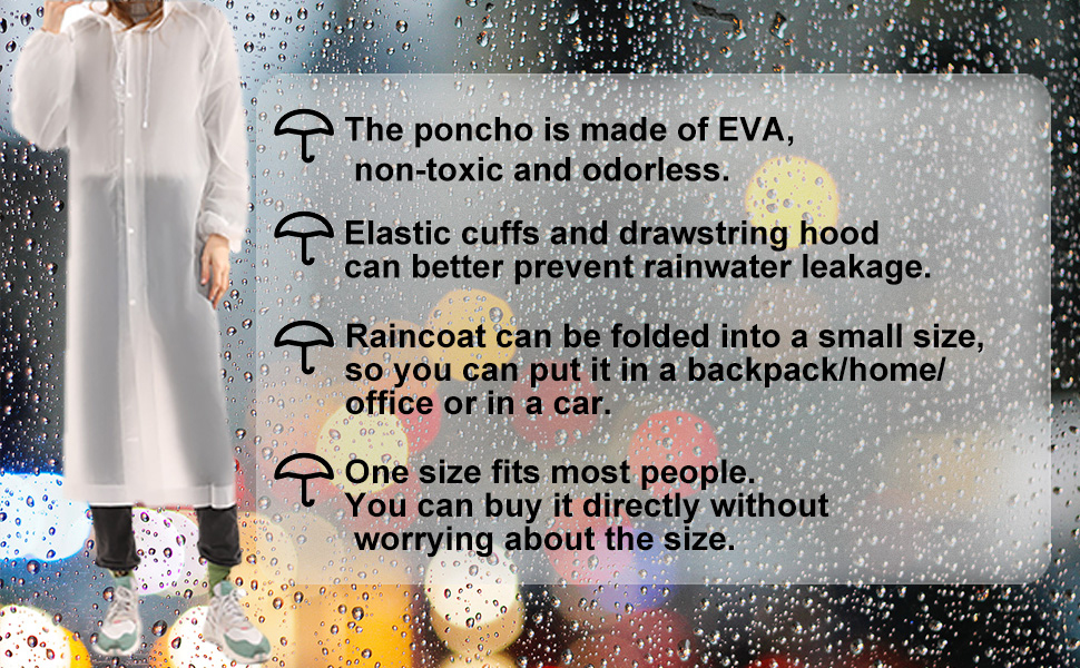 ✔ SAFETY & NON-TOXIC: The poncho is made of EVA, non-toxic and odorless, you can wear it with confidence.