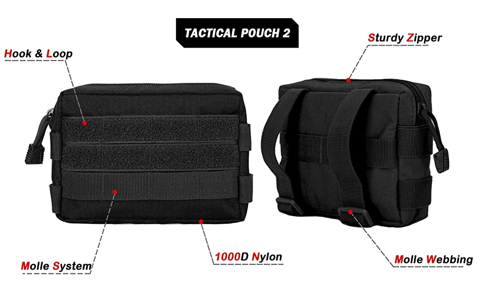✔ High Quality: These molle bags are made of high-quality 600D nylon material for great durable anti-scrape and wear-resistant. The sturdy stitches make them stronger and more durable in various environments.