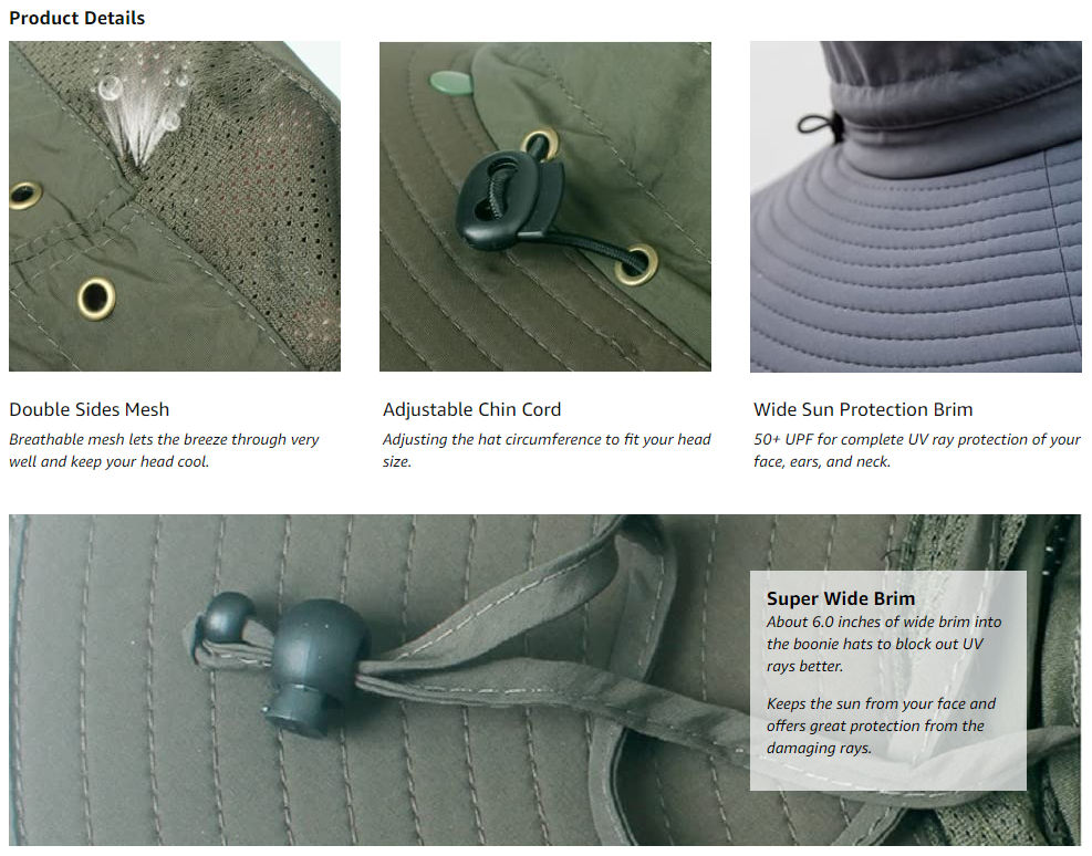 ✔ SUN PROTECTION: UPF 50+ protection, 6 inches super wide brim with face and neck flaps (flaps are removable) keeps the sun from your face and neck and offers great protection from damaging rays.