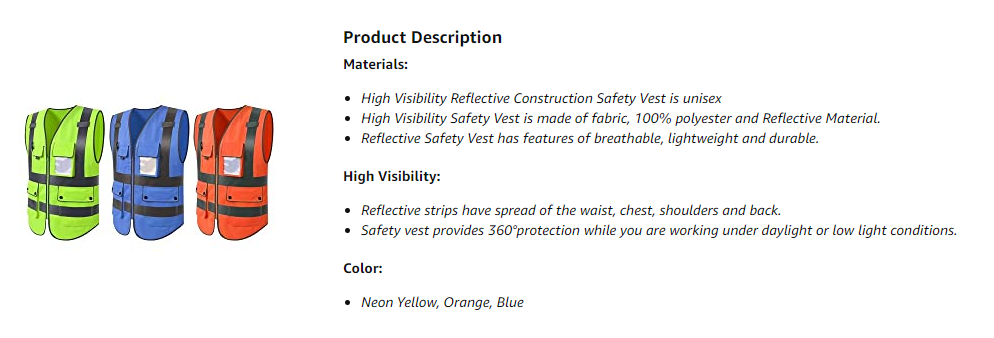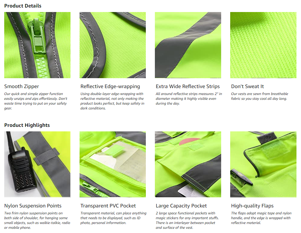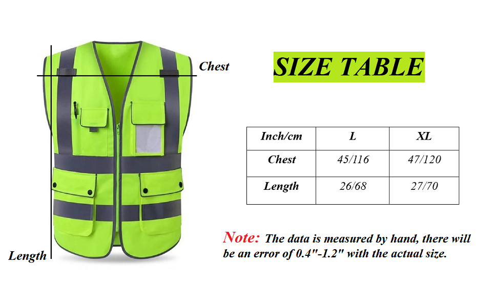 3) Please CHECK the SIZE TABLE carefully before ordering. Fully Compliant with ANSI/ISEA 107 Class 2 Standards. Risk-Free! Any Imperfections are guaranteed for Full Refund or Exchanged.