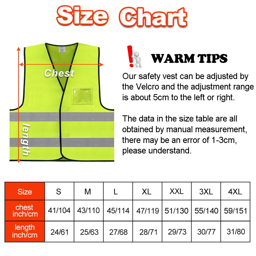 ✔ Unisex: You can easily adjust the tightness of the construction safety vest through the fastener, the adjustment range is within 5cm. Perfect for men, women, young adults and teenagers, small or tall.