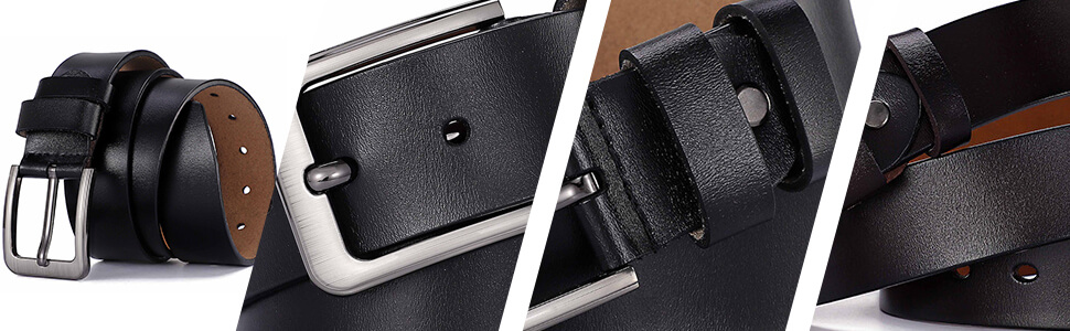 ✔ Material: The mens black leather belt is made of high-quality leather, with a fit, matte finish and smooth texture. The button is made of alloy to ensure long-lasting beauty and wear-resistant.