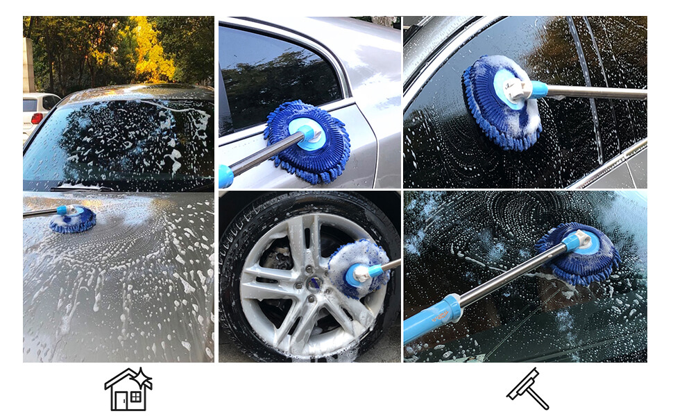 ✔ HIGH QUALITY: Premium microfiber chenille material mop head and stainless steel metal tube make sure the car wash mop is high quality.