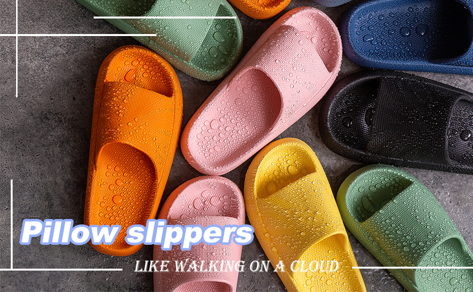 Non-Slip Pillow Slippers with Thick Sole for Bathroom and Outdoor