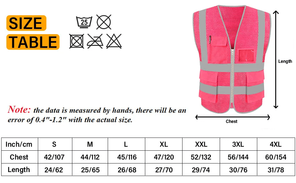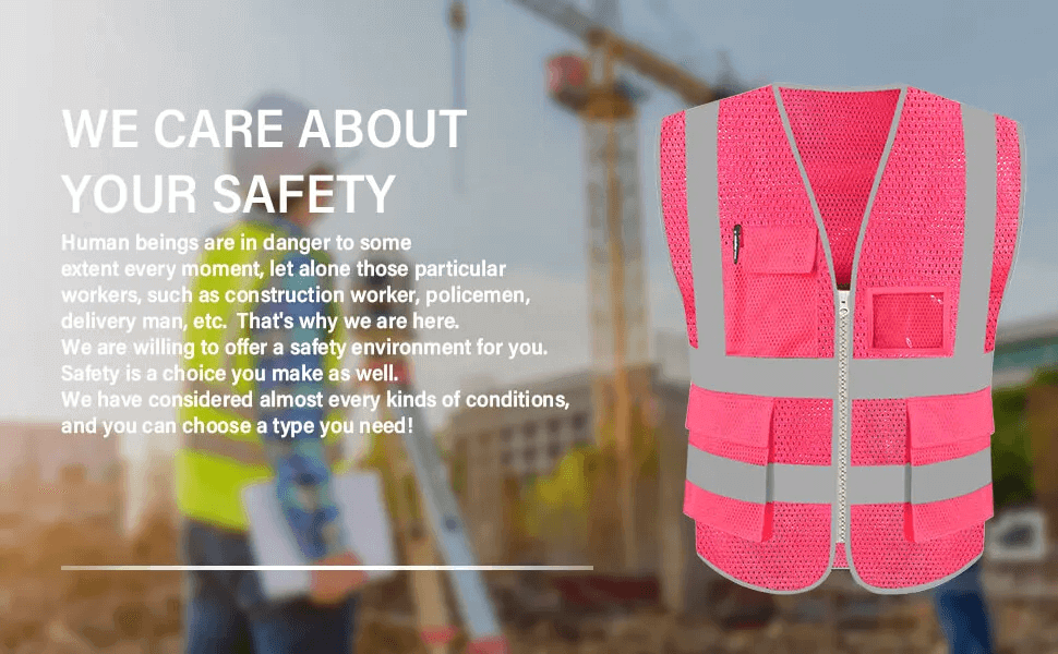 The Pink Safety Vest with Pockets and Zipper for Women is an ideal choice for women at work, to show support for breast cancer month or to identify yourself as a visitor or volunteer at a community event. The high visibility pink safety vest provides added visibility in highly traveled areas and is great for work or promotional events. Pink work clothes like this vest can also be used as visitor identification and benefit walks.