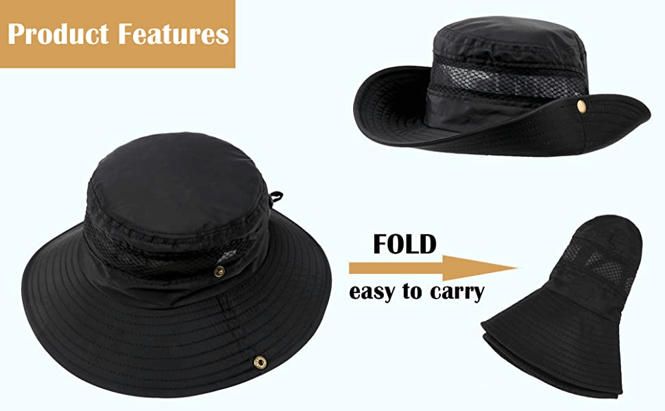 ✔ High Quality Materials & Breathable: Made of high quality lightweight nylon material, it is breathable, waterproof windproof and quick dry. The mesh design allows for sweat and heat to easily escape hat, ensuring your head stays cool ventilated even on hot and humid days. sweat absorption mesh lining removes sweat from eyes and face.