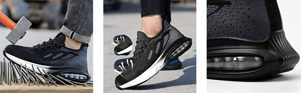 ✔ Sole Double Protection: The safety trainer is kevlar midsole five times stronger than steel material and has puncture resistance >1100. It offers double protection for your feet and prevents punctures from sharp objects.