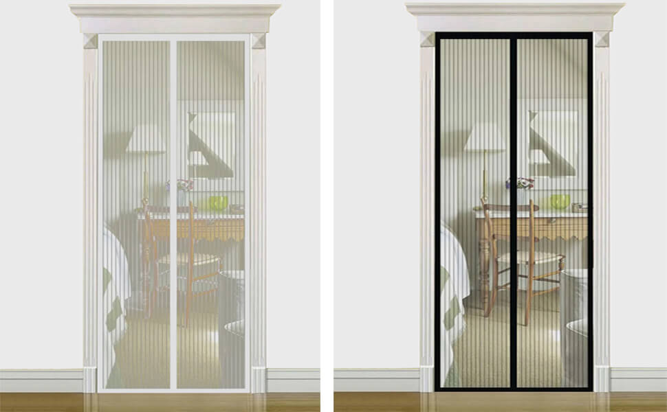 ✔ Durable & Won't Fall Apart: We improved fabrics that are more durable and won't fall apart. The widening design at the door head will not cause tearing at the connection of the magnetic screen door.