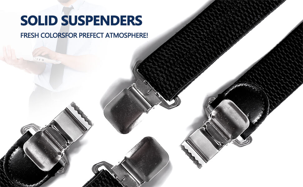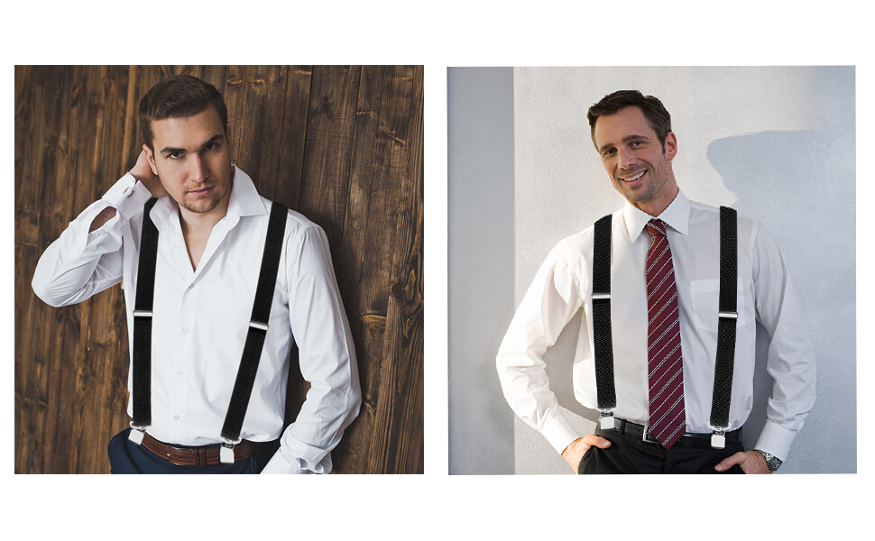 ✔ Sturdy Clip: The mens braces with 4 metal teeth prevent damage to the pants, are easy to use and can be securely attached to jeans or pants. Very comfortable whether standing or sitting.